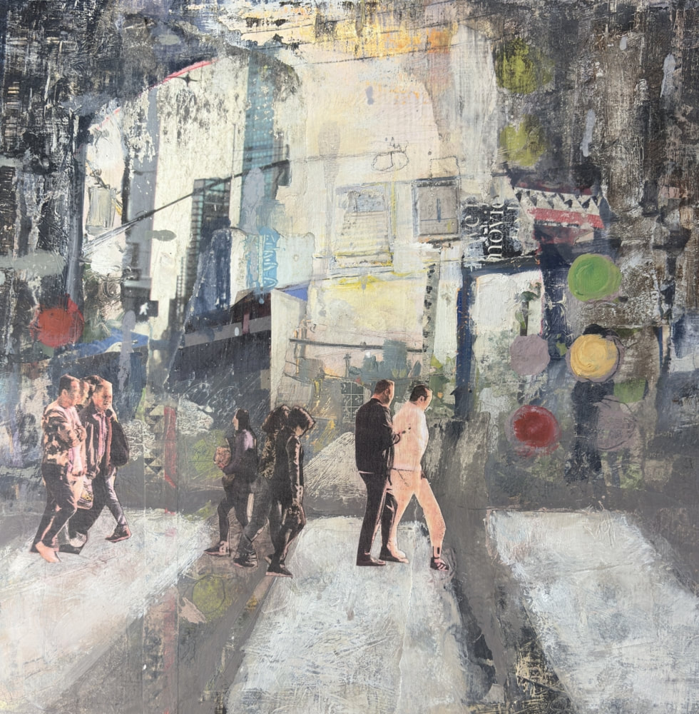 I have re-worked this painting so many times, I’ve lost count. I was about ready to pitch it. While working on a few other mixed media “walk” pieces, I saw it sitting in a corner and decided to give it one last chance. This is it’s last hurrah and I think it’s the best it’s ever looked!
