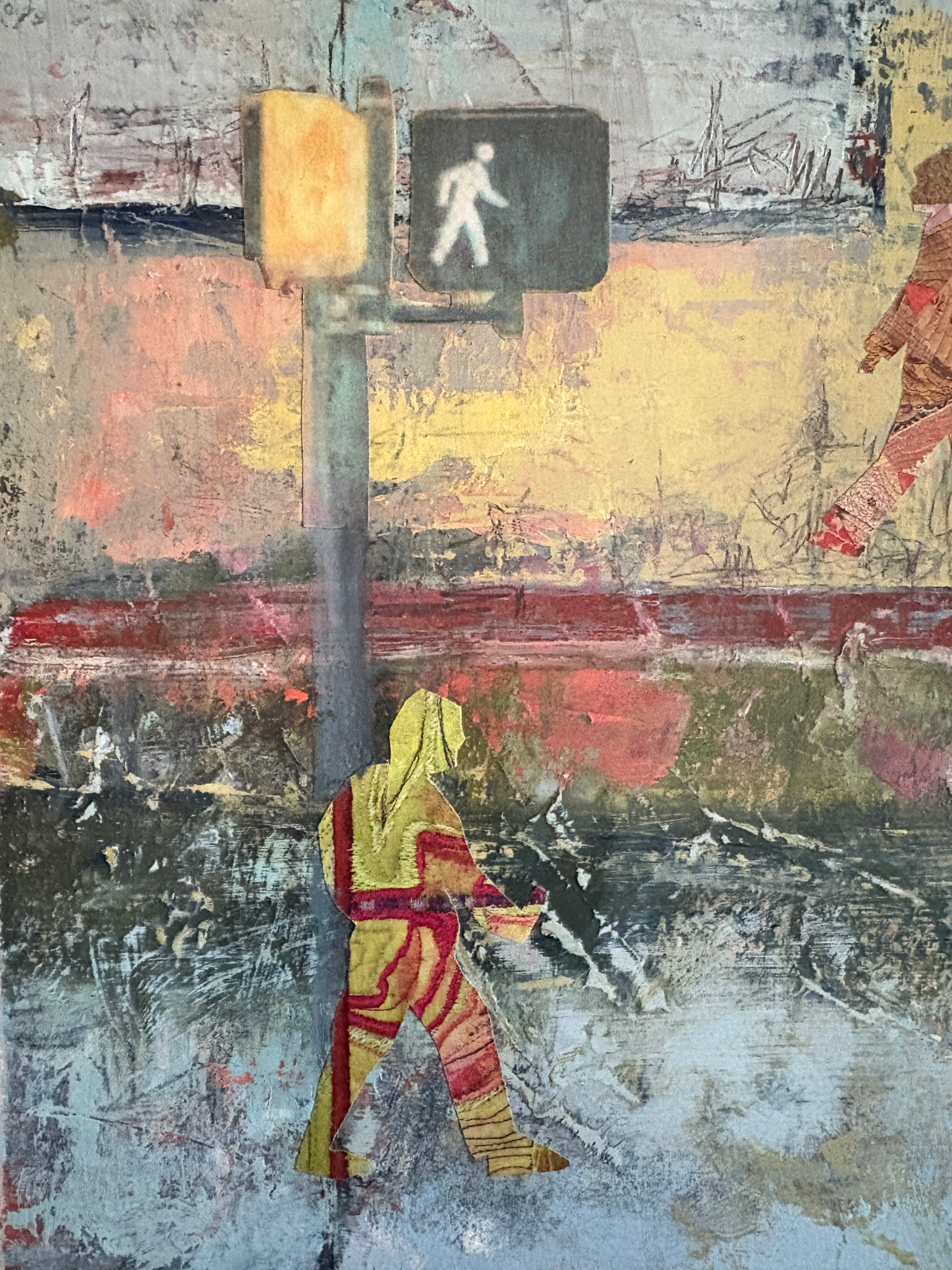 but something about it appealed to me so I kept it around. Every now and then I’d add a layer of color or texture. When this Walk series started taking shape, I knew this piece would fit in with just a little help!